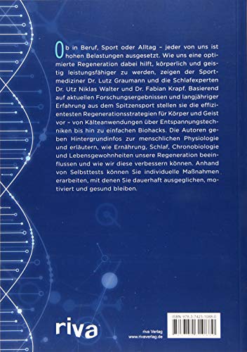 Ob in Beruf, Sport oder Alltag – jeder von uns ist hohen Belastungen ausgesetzt. Wie uns eine optimierte Regeneration dabei hilft, körperlich und geistig leistungsfähiger zu werden, zeigen der Sportmediziner Dr. Lutz Graumann und die Schlafexperten Dr. Utz Niklas Walter und Dr. Fabian Krapf. Basierend auf aktuellen Forschungsergebnissen und langjähriger Erfahrung aus dem Spitzensport stellen sie die effizientesten Regenerationsstrategien für Körper und Geist vor – von Kälteanwendungen über Entspannungstechniken bis hin zu einfachen Biohacks. Die Autoren geben Hintergrundinfos zur menschlichen Physiologie und erläutern, wie Ernährung, Schlaf, Chronobiologie und Lebensgewohnheiten unsere Regeneration beeinflussen und wie wir diese verbessern können. Anhand von Selbsttests können Sie individuelle Maßnahmen erarbeiten, mit denen Sie dauerhaft ausgeglichen, motiviert und gesund bleiben.